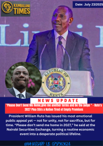 Ruto claims his vision is “disciplined” and “deliberate.” But to many, his leadership has been defined by contradictions, opulence at the top, and slogans replacing substance. With 2027 looming on the horizon, this plea felt like an admission: the people have stopped believing.
